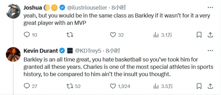 星空入口官网-网友:没冠军你也就是个巴克利 杜兰特:巴克利没你说的那么差